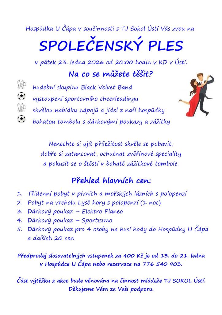 srdečně Vás zvou Hospůdka U Čápa a TJ SOKOL Ústí